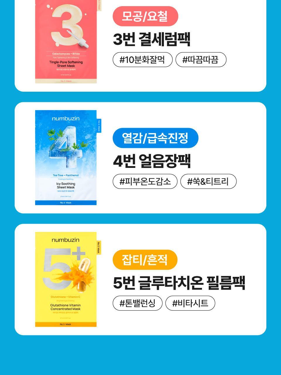 numbuzin Sheet Mask 10EA (5 Type)