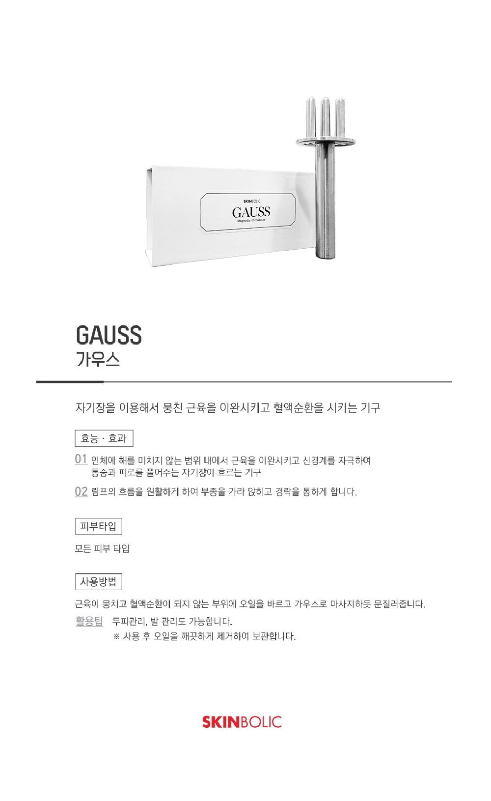 [SKINBOLIC] GAUSS (Magnetic Massage for Muscle Relaxation & Circulation)