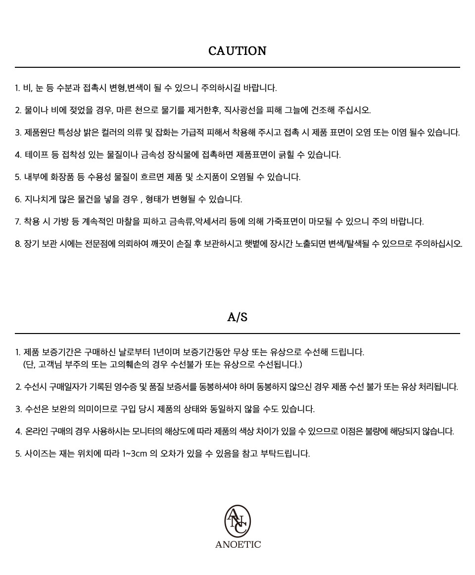 - Product color and texture may vary depending on monitor settings and lighting conditions. These variations are not considered defects, and order modifications, cancellations, or returns due to perception differences are not accepted.