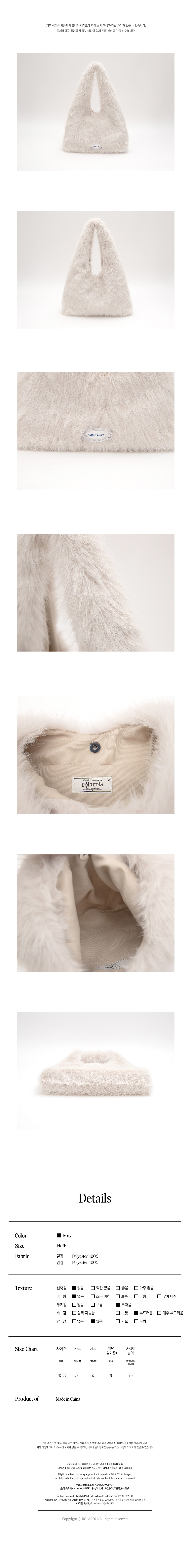 • Product color and texture may vary depending on monitor settings and lighting conditions. These variations are not considered defects, and order modifications, cancellations, or returns due to perception differences are not accepted.