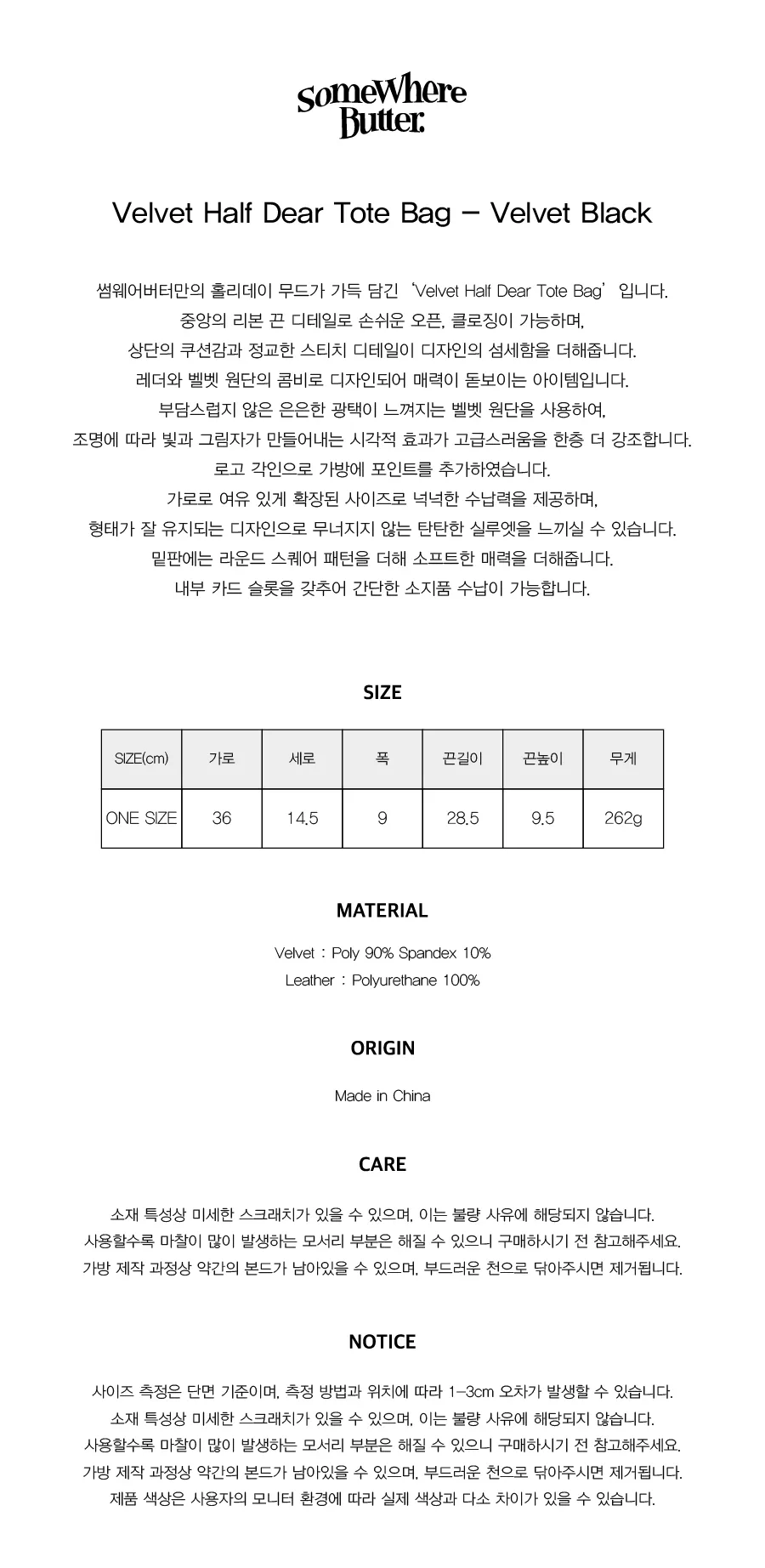 SOMEWHERE BUTTER. Velvet Half Dear Tote Bag