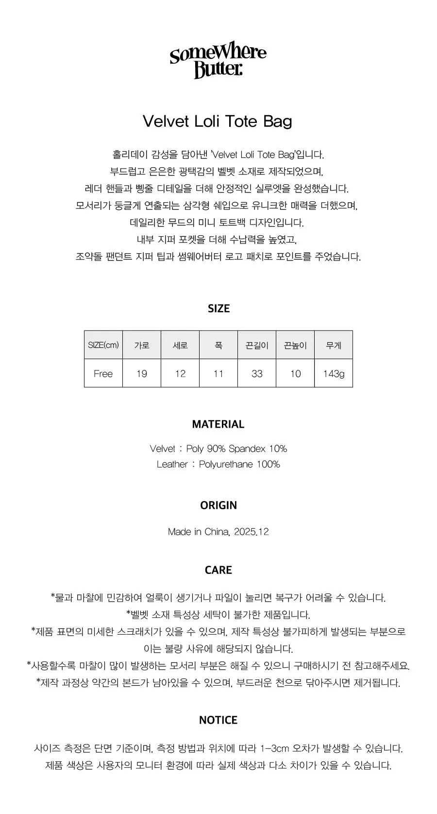 SOMEWHERE BUTTER. Velvet Loli Tote Bag
