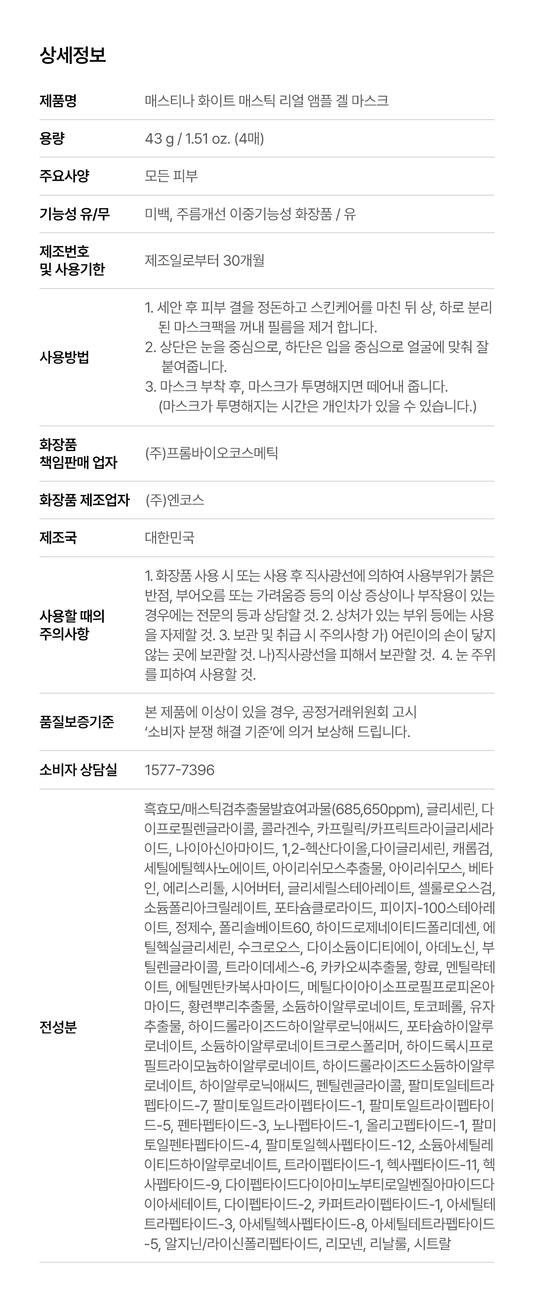 Mastic White Mastic Real Ampoule Gel Mask (4sheet)
